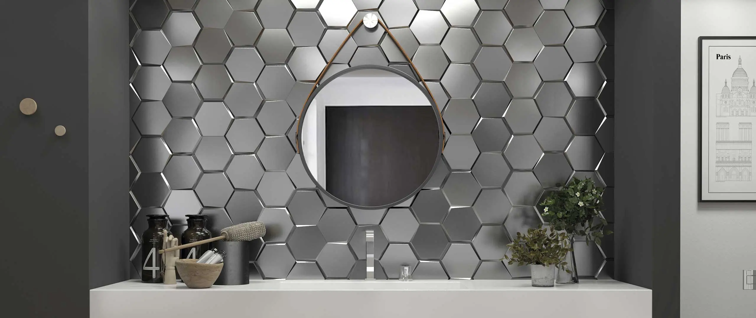 Łazienkę nawet tą małą i w bloku, możesz urządzić zgodnie z zasadmi stylu. Wybierz płytki w kształcie geometrycznym, najlepiej heksagonalnym w kolorze.