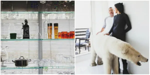 Obok nowoczesnych, designerskich przedmiotów ustawione są klasycyzujące dekoracje – świeczniki, wazoniki, lampy. Na ścianach obok obrazów i zdjęć w niemal wszystkich stylach malarskich, znajdziemy wiszące maski voo doo i trofea zwierzęce. Wydaje się, jakby całe to wariactwo wnętrzarskie odzwierciedla szalony rozmach i wszechstronność w projektowaniu samego Starcka, który te osobliwe przestrzenie dzieli ze swoją małżonką Jasmine. Zobaczcie sami, jak mieszka Philippe Starck.