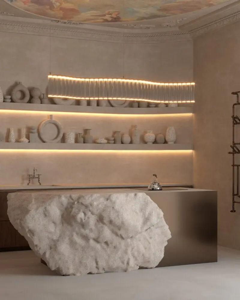 Metaliczne wykończenia stanowią fascynujący pomost pomiędzy przeszłością a przyszłością. Przez wiele lat metaliczne dodatki były zdominowane przez miedź, brąz i odcienie złota. Najnowsze trendy będą zmierzać ku wizji przyszłości, której wyrazem będzie między innymi stal szlachetna. Powszechnie znany materiał, przeżyje swój wielki come back, oferując zarówno estetykę, jak i wytrzymałość. Szczotkowana stal pokryje fronty meblowe oraz blaty, a także znajdzie swoje zastosowanie w obiciach wysp kuchennych czy drzwi, otwierając nowe horyzonty w aranżacji przestrzeni.