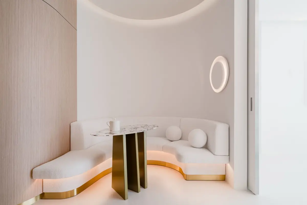 Projektanci zawsze poszukują środków wyrazów opisujących przyszłość – najczęściej wybierając do tego obłości, krzywizny oraz organiczne formy. Niezależnie czy to faliste budynki Oscara Nieyemera, czy też kolekcja mebli Tulip Eero Saarinena – przyszłość zawsze jawiła się jako ucieczka od symetrii. Ostatnio ten trend powoli powraca do naszych wnętrz – mieszanka płynnych kształtów, intrygujących wykończeń i oświetlenia w stylu space age stanowi estetykę, z którą będziemy się coraz częściej spotykać, zwłaszcza w projektach wysokotechnologicznych domów przyszłości