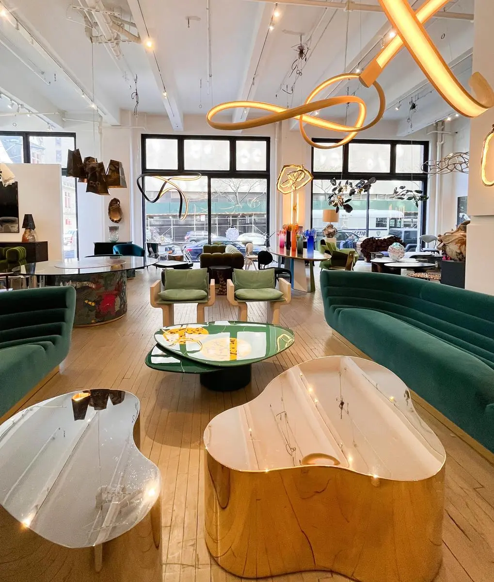 Kluczową rolę w tej stylistyce odgrywają również tekstury – zwłaszcza dywany typu shaggy o długim włosiu, które wprowadzają do wnętrz miękkość i warstwowość. Retrofuturyzm chętnie eksperymentuje z kontrastowymi połączeniami i odważnym designem, sprawiając, że przestrzenie nabierają nieco surrealistycznego, a nawet filmowego charakteru. W aranżacjach nie brakuje także metalicznych akcentów, inspirowanych stylistyką kosmiczną, które podkreślają futurystyczny wymiar tej estetyki.