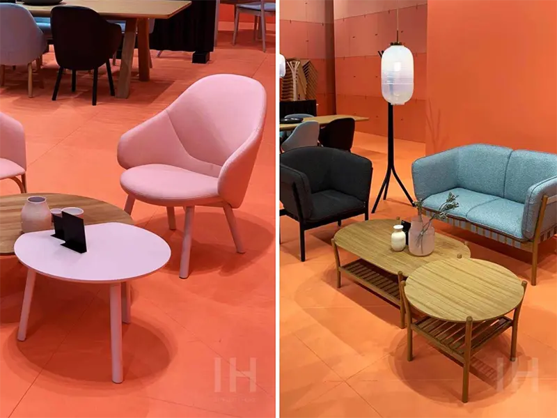 Wiele standów przypominało niebo o zachodzie słońca. Przeplatające się pomarańcze, czerwienie, fiolety i delikatne róże tworzyły wspaniałe widowisko dotykające wszystkich zmysłów. Stoiska, które postawiły na tę paletę kolorystyczną zazwyczaj prezentowały możliwości aranżacyjne koloru roku 2019 – living coral.