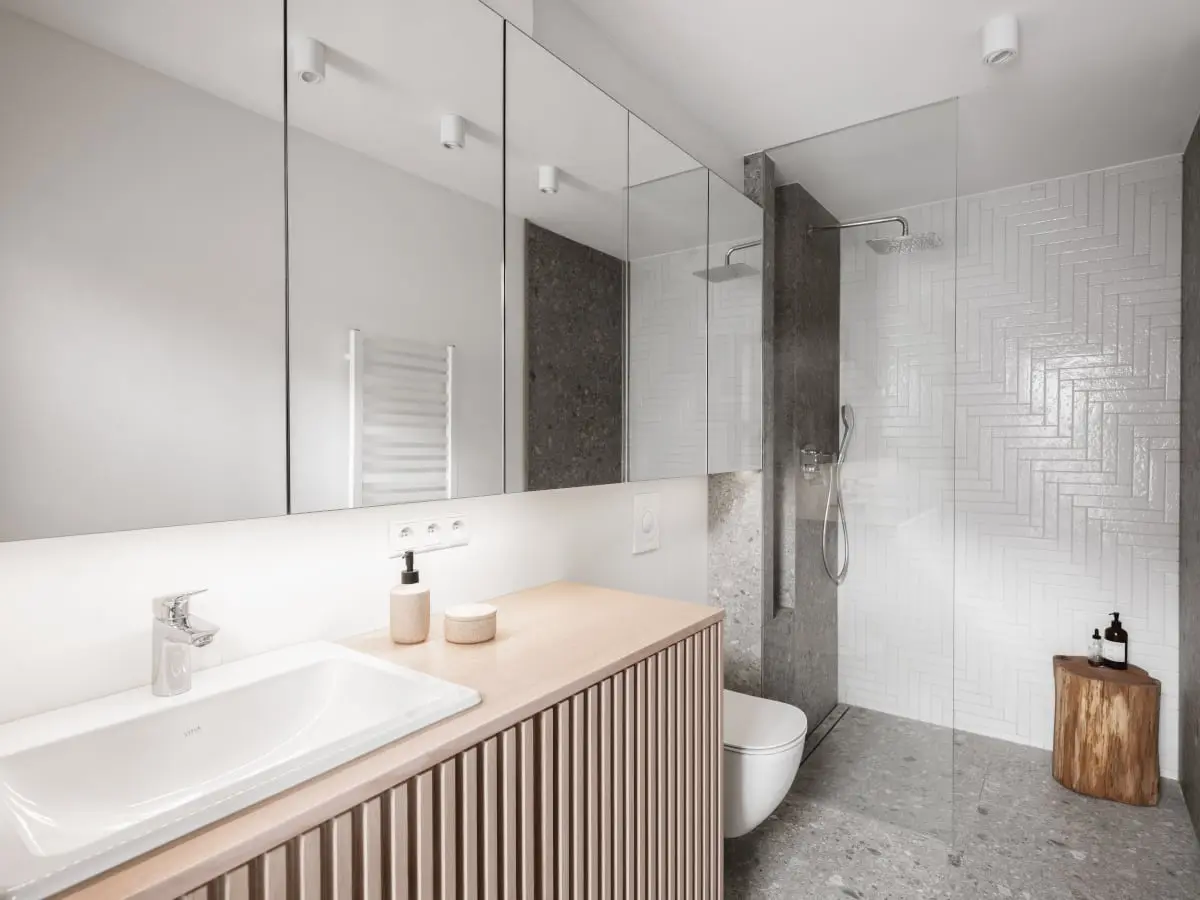Równie dobrze możemy pójść na całość, wprowadzając do wnętrza wzór lastryko w większej formie. Mam na myśli płytki wielkoformatowe w lastryko, dostępne w naszych showroomach. Zjawiskowe spieki są chętnie wykorzystywane przez architektów w formie oklein ściennych i podłogowych. Równie często pojawiają się w formie nowoczesnych blatów kuchennych i łazienkowych oraz jako obudowa wyspy kuchennej.