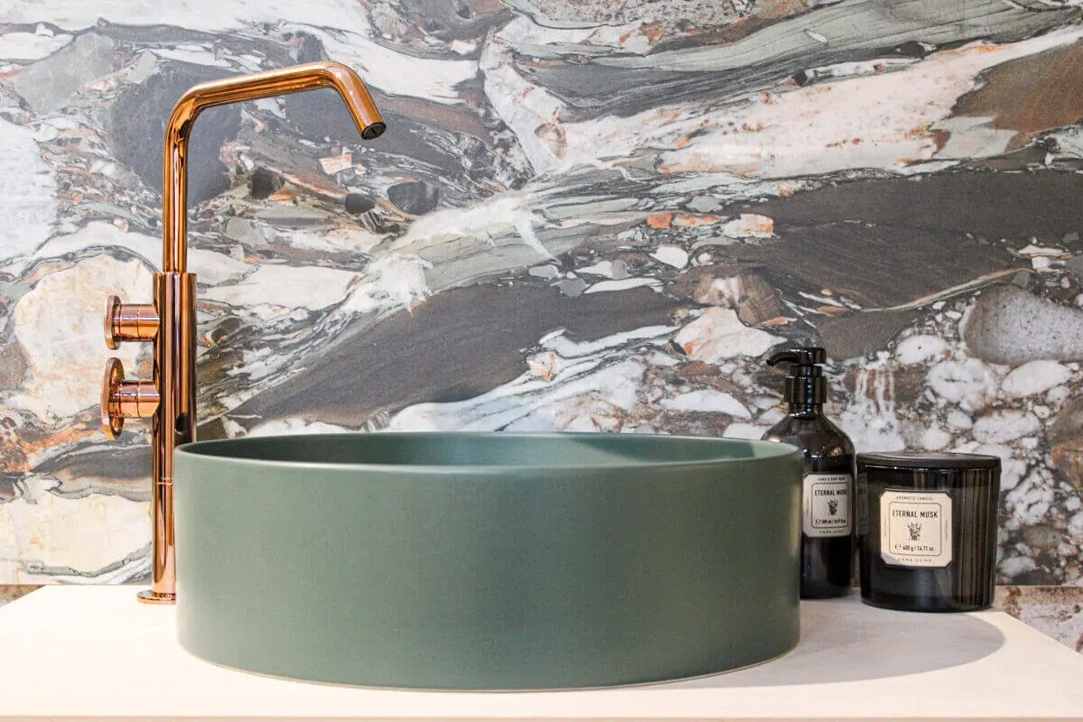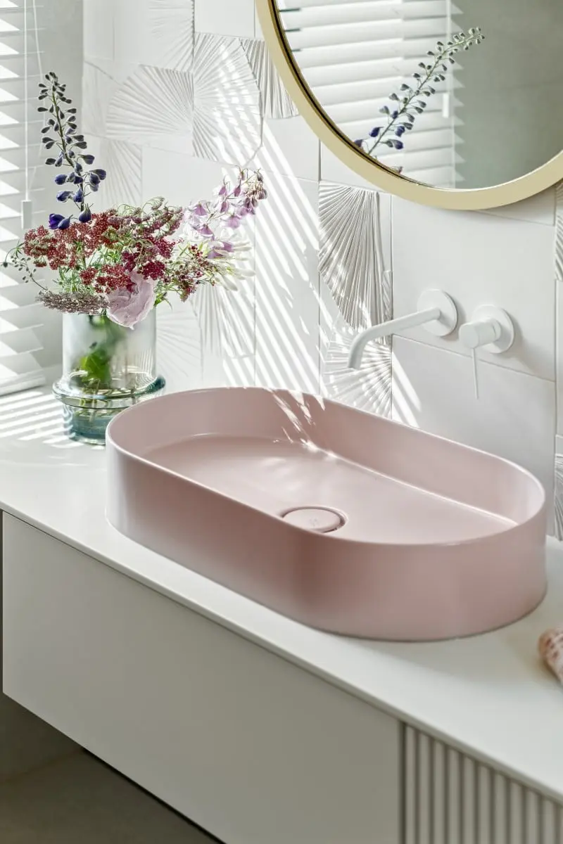 Biel oczywiście nigdy nie wyjdzie z mody i zawsze będzie ponadczasowym wyborem. Jeśli jednak poszukujesz czegoś nietuzinkowego i jednocześnie jesteś zwolennikiem luksusowych rozwiązań, które wprowadzają do wnętrza powiew światowego designu, postaw na chociaż jeden element ceramiczny w niestandardowej barwie.