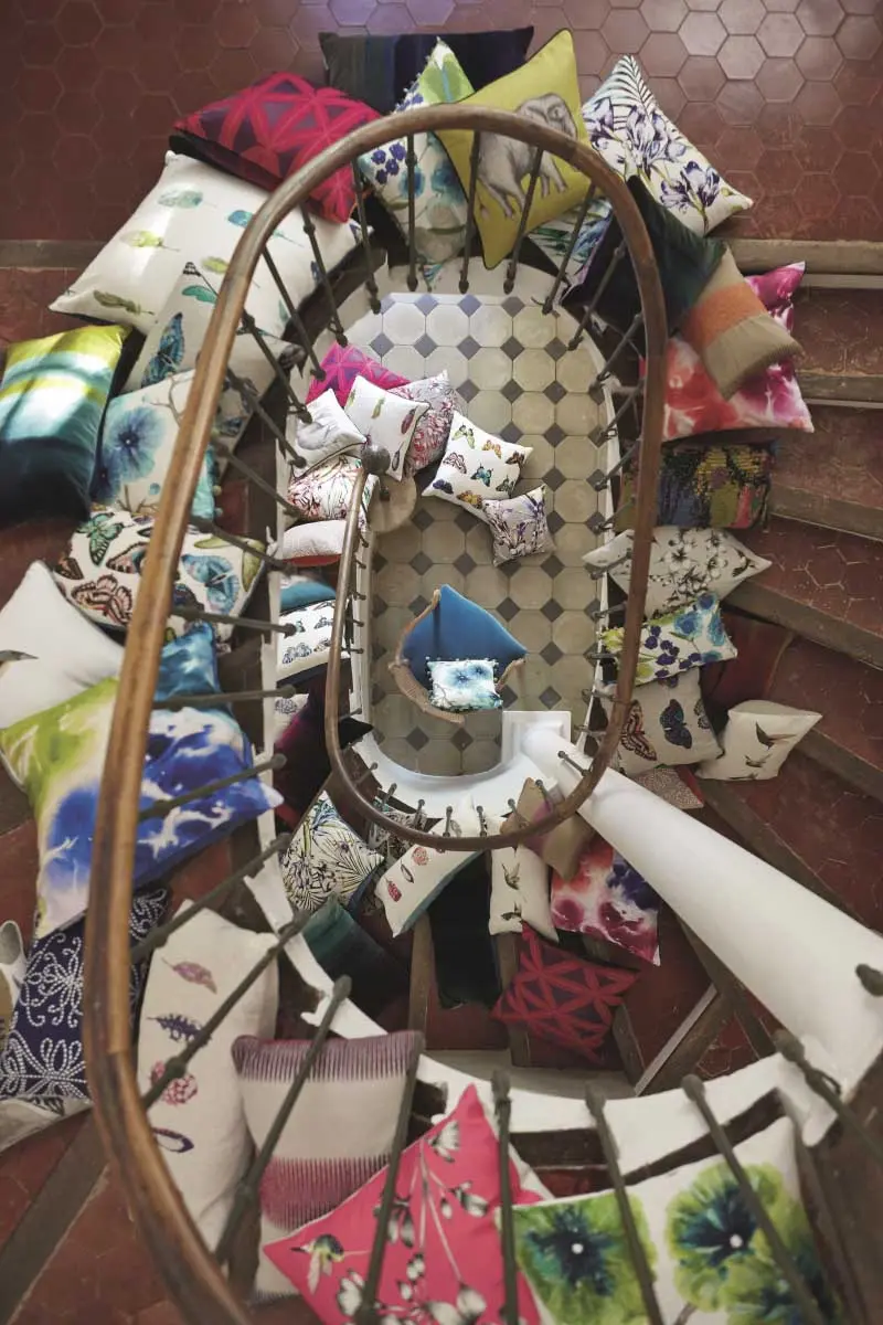 Tkaniny z kolekcji Amazilia, świetnie prezentują się na poduchach dekoracyjnych.