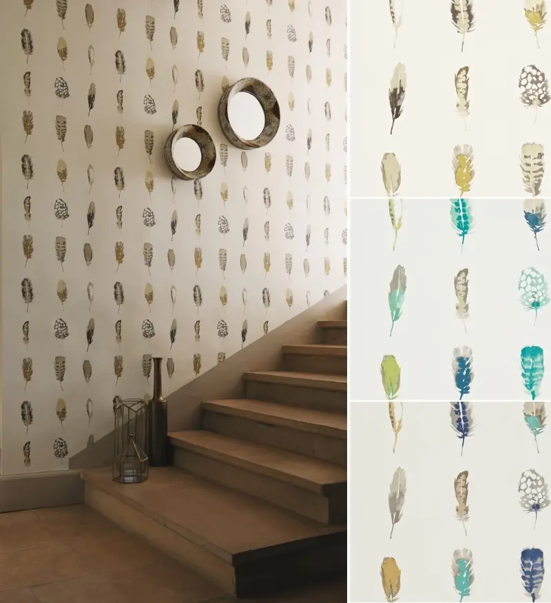 Delikatne piórka na tapecie Limosa, występują w kilku wariantach kolorystycznych.
