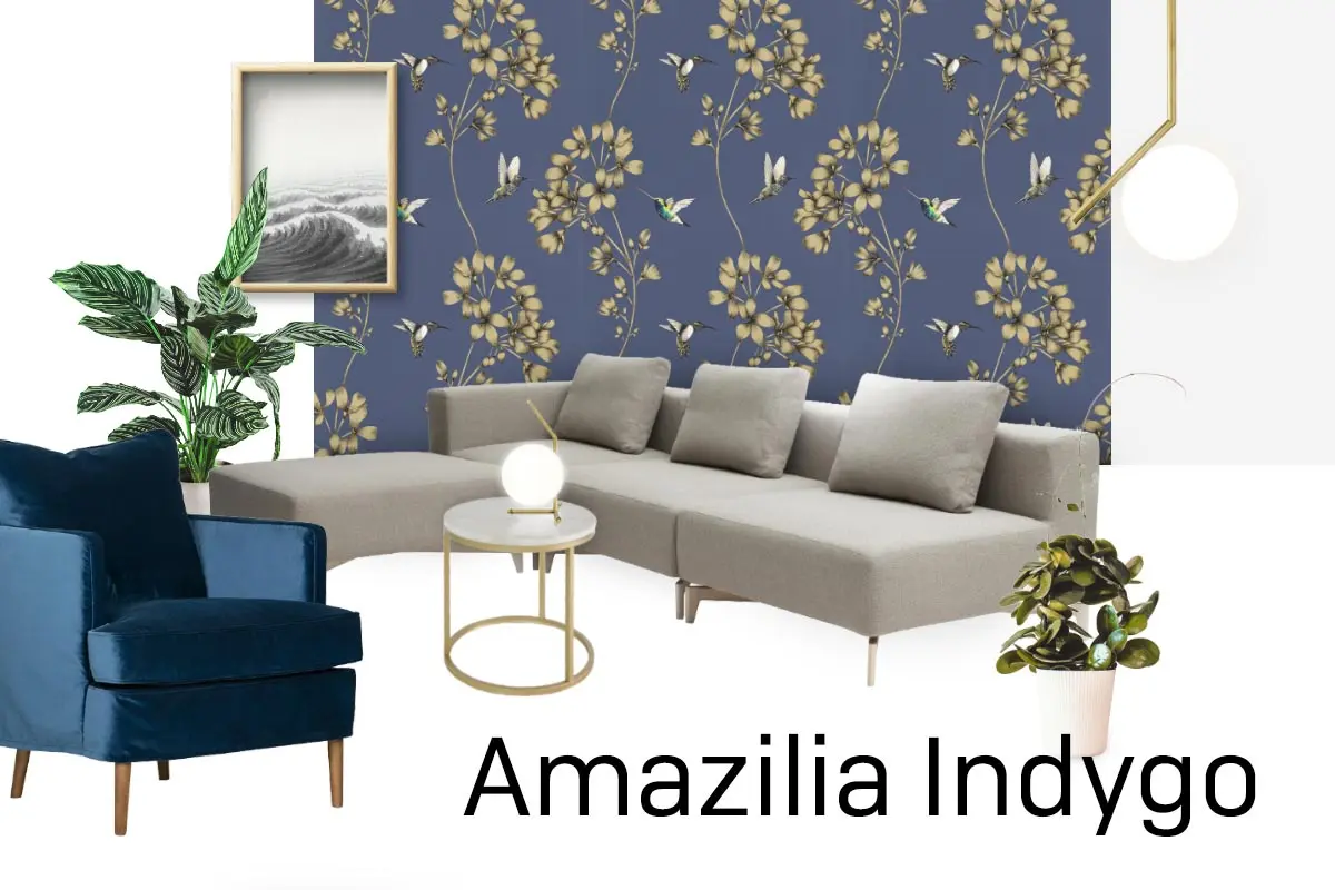 Stylistka Internity Home, z pomocą naszego grafika, przygotowała moodboardy z tapetami Amazilia w roli głównej. Zainspiruj się propozycjami aranżacji i dobierz wzór idealny dla swojego wnętrza.