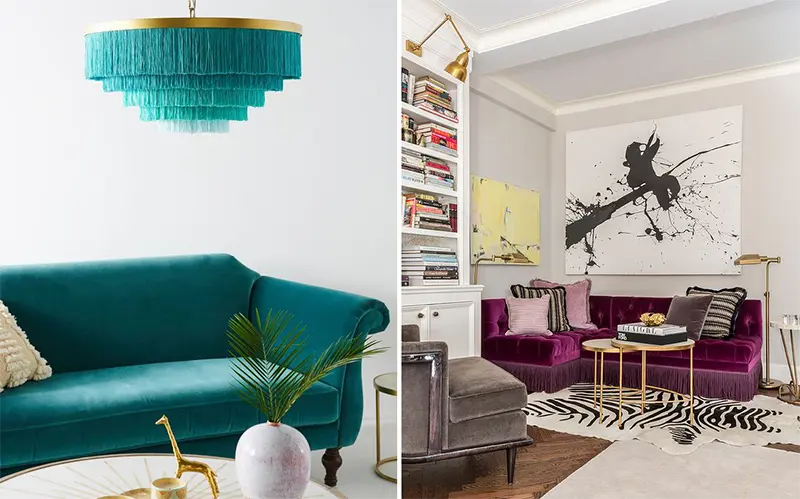 Spokojnie, ich nowoczesne wydanie, nie ma nic wspólnego z żadną traumą z dzieciństwa. Aksamitne frędzle przy wytwornym oświetleniu czy welurowej pufce na złotym cokole, naprawdę robią wrażenie. Ta retro estetyka wprowadza do nowoczesnych wnętrz nieoczywisty element zaskoczenia.