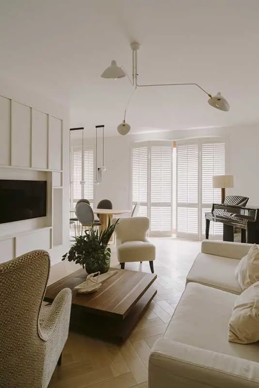Niesamowicie przytulne i stylowe wnętrze uzyskasz, łącząc kilka odcieni beżów. Jednakże ostrzegam, że jest to wyższa szkoły jazdy. Staraj się dążyć do nieoczywistej gry różnymi tonacji, fakturami i świadomie operuj światłem. W przeciwnym razie możesz stworzyć mdłe, nijakie wnętrze. Plusem takiego rozwiązania jest efekt ciekawych przejść tonalnych, co sprawia że przestrzeń nabiera głębi.
