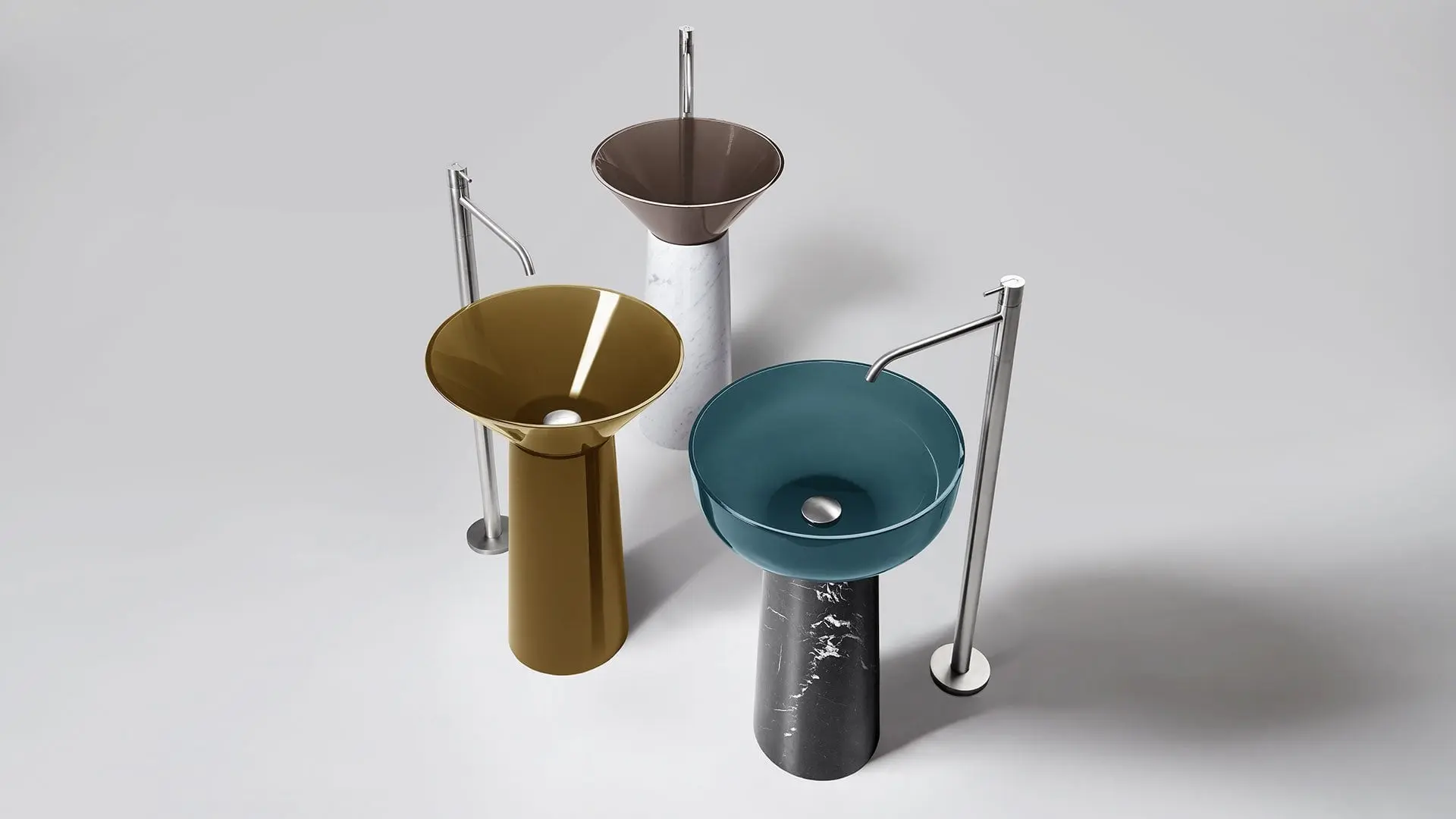 Wśród umywalek proponowanych przez producenta, znajdziemy różne kształty i kolory. Możliwości spersonalizowania wnętrza zwiększa dostępność postumentów w różnych wykończeniach, jak chociażby marmur czy fornir. Produkty AntonioLupi idealnie pasują zarówno do wyrafinowanych projektów przestrzeni prywatnych, jak i użyteczności publicznej, jak kurort spa czy ekskluzywny hotel.