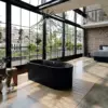 Łazienka 2022 roku proponuje rozwiązanie jakimi są wet roomy, czyli przeszklone kubiki z wanną i prysznicem. Taka łazienka w łazience pozwala oddzielić strefę kąpielową od reszty pomieszczenia i zapobiega rozchlapywaniu się wody na całej powierzchni. Dzięki temu możemy urządzić łazienkę jak salon – z wygodnym fotelem i piękna drewnianą podłogą.