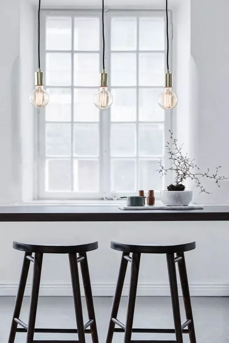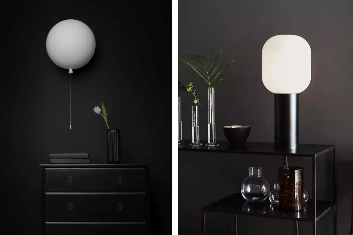 Oświetlenie jest bardzo ważnym elementem każdego wnętrza i może stanowić jego dekoracje. Na tle czarnej ściany, wyjątkowo zabłyśnie lampa o kloszu z mlecznego szkła.