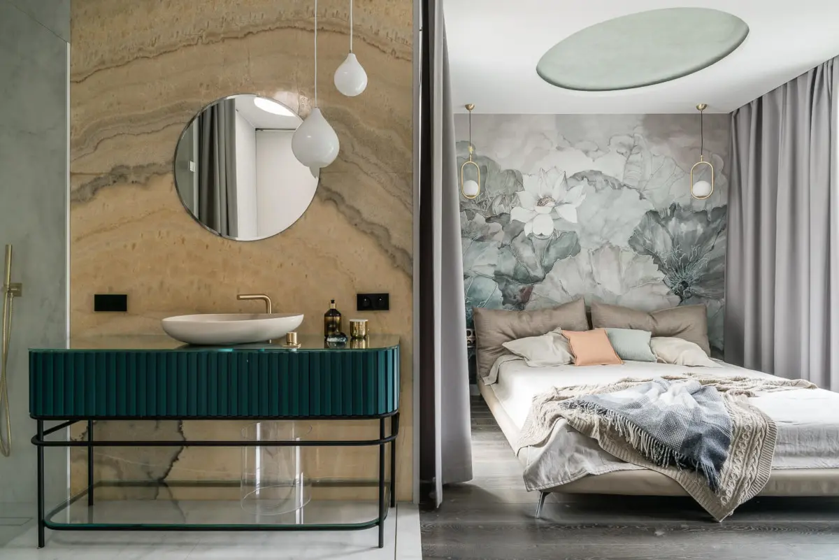 Jak już wspomniałam na początku, godną alternatywą dla naturalnego kamienia są płytki. Technologia zaszła na tyle daleko, że ich rozmiar może sięgać do nawet 160×320 cm. Ponadto możemy je stosować nie tylko jako spektakularnie piękne okleiny ścienne i na podłodze, ale też w formie frontów mebli, blatów kuchennych, stołowych, szafek umywalkowych, obudowy kominka czy fasady budynku. Bardzo silnym trendem jest również wykonywanie z nich wanien oraz umywalek. Wykorzystując to rozwiązanie jesteśmy w stanie otrzymać bardzo spójne, minimalistyczne wnętrze, które jednocześnie robi ogromne wrażenie.
