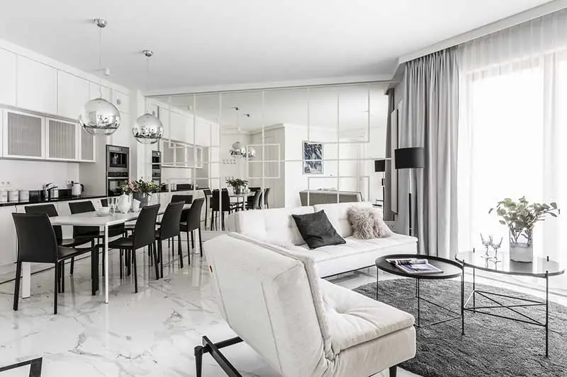 Eleganckie połączenie szarości z marmurem, bieli i błyszczących płytek, stylowe dodatki, zdobienia i połysk. Kuchnia w stylu glamour zachwyca swym reprezentacyjnym wyglądem. Poniżej prezentujemy bardzo zróżnicowane projekty, ale jedno co je łączy to delikatne elementy w połysku. Bo to w stylu glamour soft to jest najważniejsze!