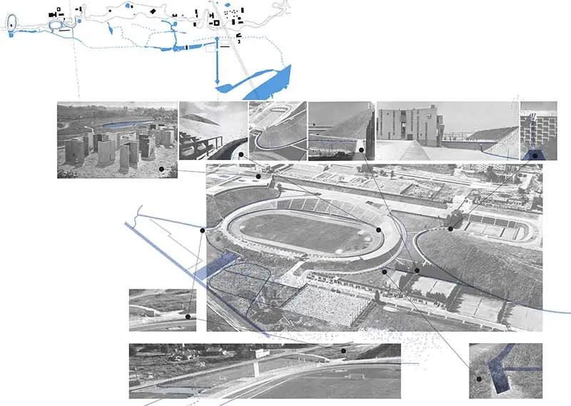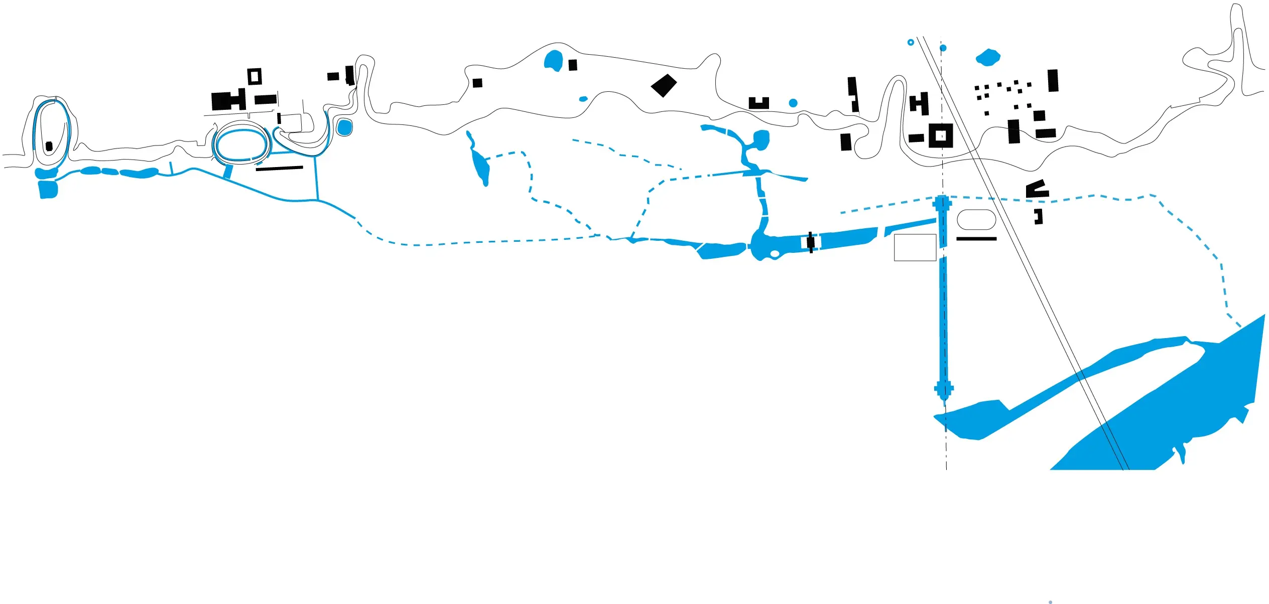 2.Analiza systemu wodnego ośrodka sportowego SKS Warszawianka, 2015, materiały badawcze (responsywność lądu i wody) do wystawy Amplifikacja natury, opracowanie: CENTRALA i Skwer Sportów Miejskich, na podstawie materiałów archiwalnych z Muzeum Akademii Sztuk Pięknych w Warszawie