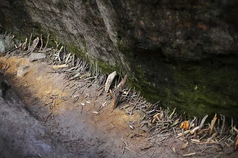 5.Skały podparte patykami przez turystów na szlaku w Górach Stołowych, 2010, materiały badawcze (gesty architekturotwórcze) do wystawy Amplifikacja natury, fot. Zuzanna Kacperek-Karetta