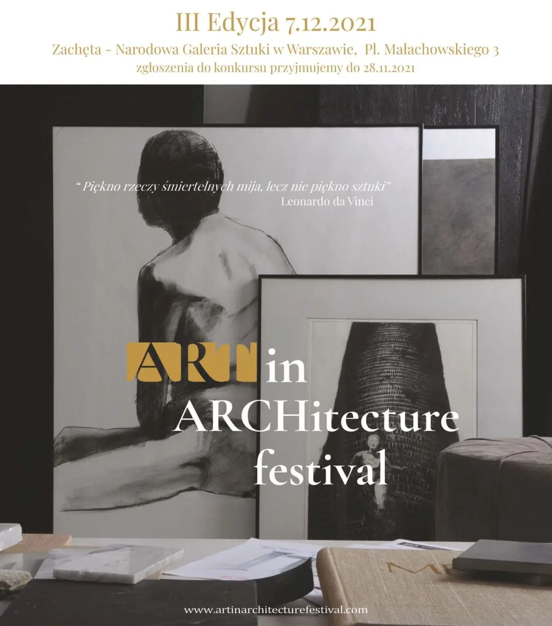 Obecność sztuki oraz jej rola we wnętrzach to jeden z najchętniej poruszanych tematów w branży architektonicznej. Festiwal Art in Architecture jest inicjatywą mającą na celu promowanie najlepszych projektów wnętrz i przestrzeni publicznych, których integralną częścią są dzieła sztuki. Trwa pierwszy etap festiwalu, obejmujący nadsyłanie zgłoszeń projektów na konkurs w czterech kategoriach: mieszkanie/dom, przestrzeń publiczna, biuro i hotel. Prace mogą zgłaszać zarówno architekci, architekci wnętrz, jak i inwestorzy. W związku z dużym zainteresowaniem konkursem oraz deklaracjami uczestników skłonnych nadsyłać swoje prace w nieco późniejszym terminie, został on przedłużony o 21 dni do dnia 28 listopada 2021 r. Tym samym zmianie uległa także data oficjalnego wręczenia nagród. Uroczysta gala z wręczeniem statuetek odbędzie się 7 grudnia br. w budynku Zachęty, Narodowej Galerii Sztuki w Warszawie.