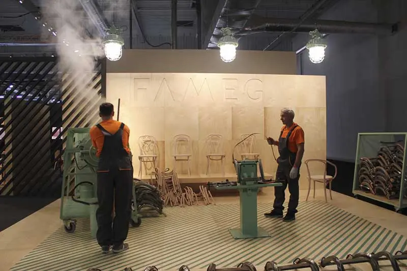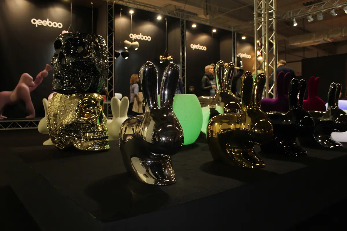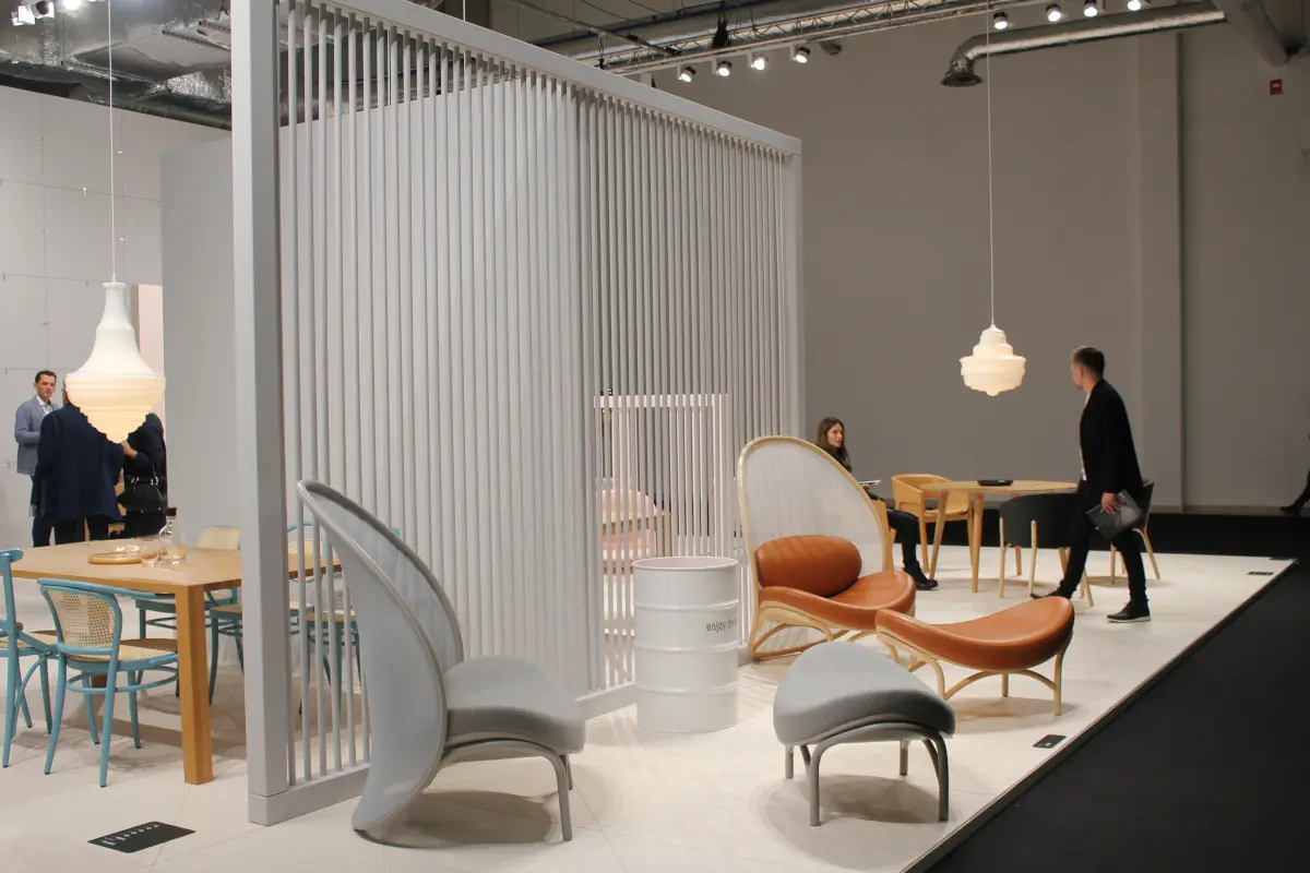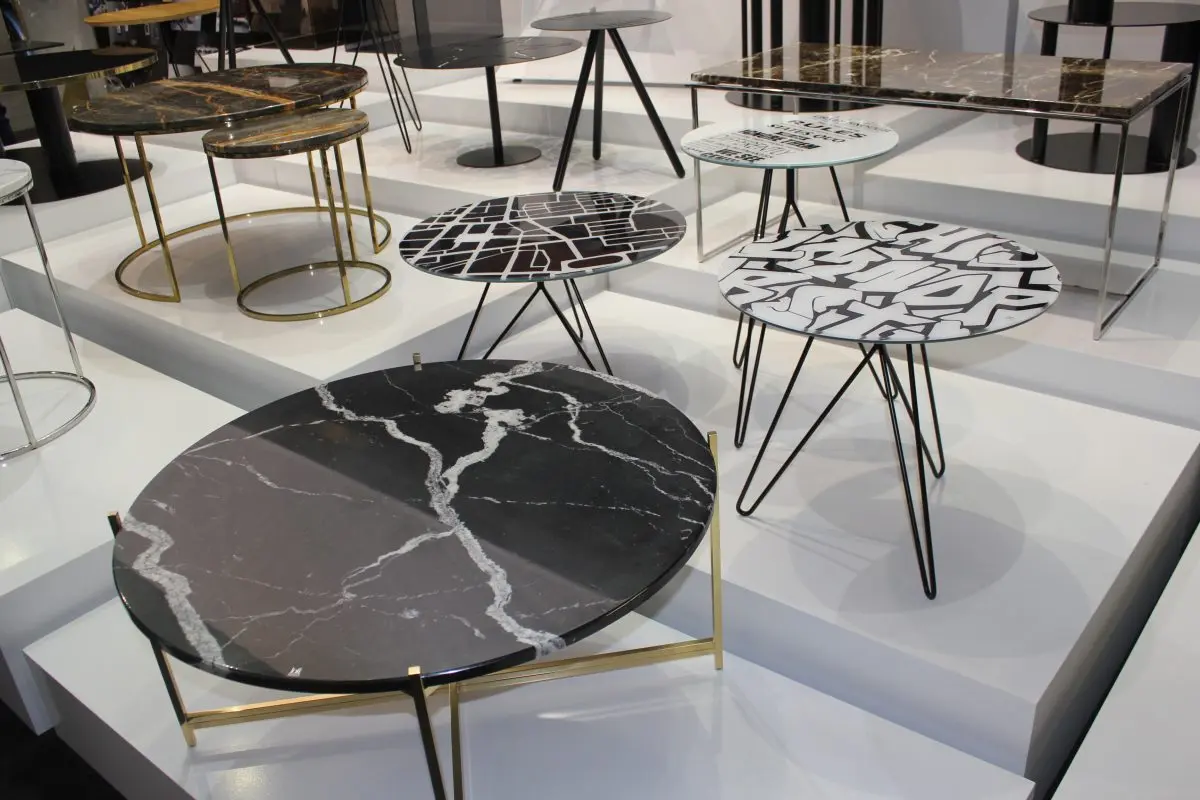 W blasku fleszy i w kręgu zainteresowania były welurowe meble tapicerowane. Kolory? Oczywiście granat, butelkowa zieleń, musztardowy, róż, fiolet, czerwień… a jeśli wzór, to: tropikalny, albo geometryczny. Tak samo jak na Salone del Mobile Milano, gdzieniegdzie wyłaniały się piękne blaty (często eksponujące nieoczywiste połączenia wzorów) unoszące się na iście rzeźbiarskich nogach. Jeśli chodzi o meble twarde to w tym temacie winszowały klasyczne materiały, takie jak drewno (najczęściej ciemne, np. orzech) i marmur, który czasami łączono w naprawdę odważny sposób, na przykład z paskami.