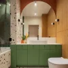 Zielona umywalka w lastryko z serii Konkrit w stonowanej łazience