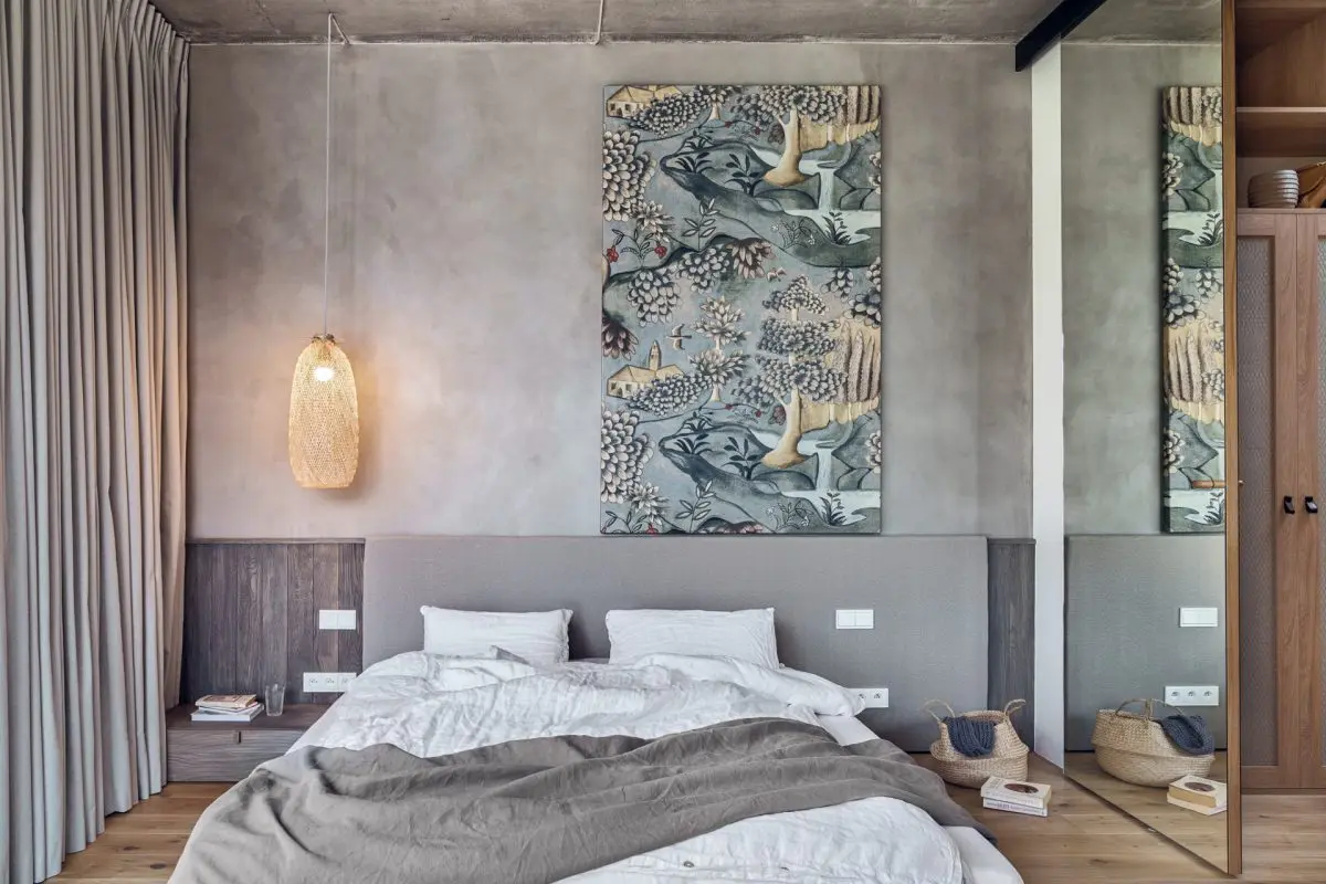 Innym rozwiązaniem, które coraz częściej możemy obserwować w projektach architektów jest betonowa wylewka na podłodze charakteryzująca się jeszcze większą odpornością na uderzenia niż płytki. Projektanci zazwyczaj ocieplają ją drewnem na ścianie lub po prostu meblami wykonanymi z tego materiału. Często do aranżacji ściany, na przykład za łóżkiem, albo telewizyjnej architekci wykorzystują porozbiórkowe deski, co doskonale wpisuje się w projektowanie w duchu eko.
