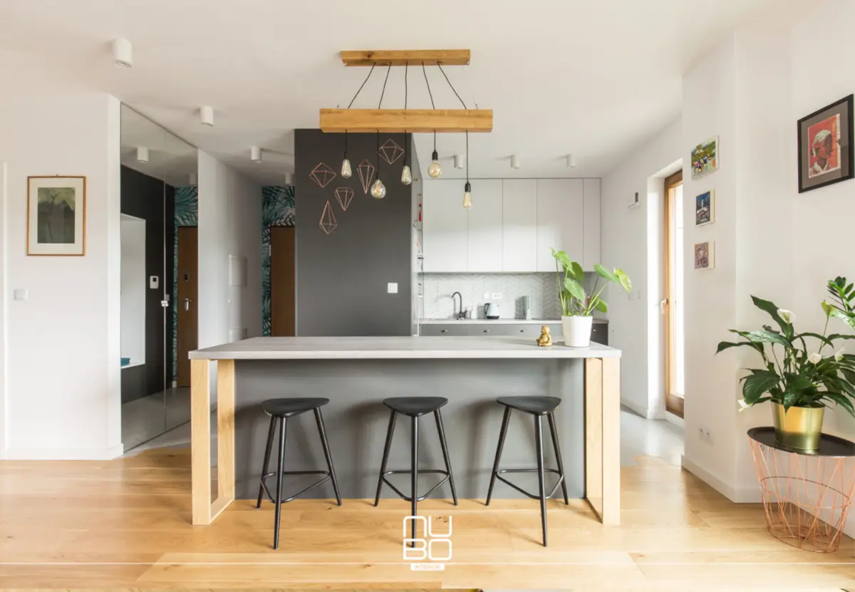Za sprawą betonu, czy to w postaci płyt, czy też farby, tapety, wylewki na podłodze, gresów imitujących ten materiał, czy nawet elementów wyposażenia, które jawnie nawiązują do betonu (na przykład umywalki czy blaty) architekci tworzą wspaniałe koncepty. Jak możemy się przekonać, chętnie go wykorzystują do wydzielenia wybranej strefy, na przykład aneksu kuchennego czy salonu w otwartej przestrzeni.