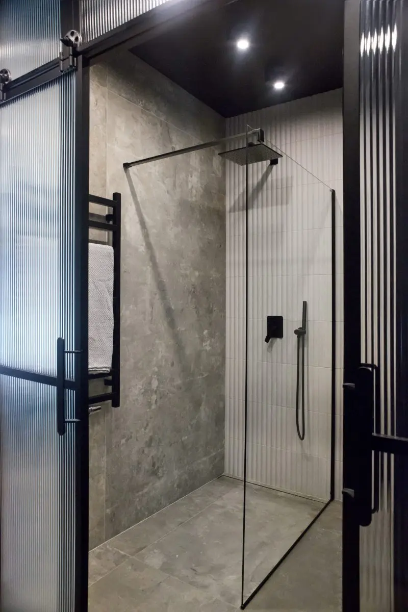 Płytka wielkoformatowa w strefie prysznicowej | proj. Ewa Tarapata