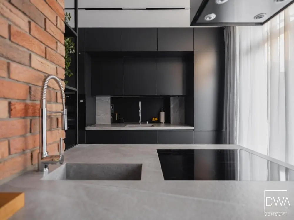 Wykorzystując możliwości płytek wielkoformatowych możemy stworzyć bardzo harmonijną aranżację kuchni. Oprócz wykończenia nimi przestrzeni roboczej, możemy je zastosować także na ścianie nad blatem, podłodze, albo do stworzenia konstrukcji wyspy wraz z zintegrowanym zlewozmywakiem. Nic nie stoi na przeszkodzie, aby wykonać z nich oryginalne, łatwe w utrzymaniu w czystości i trwałe fronty meblowe.