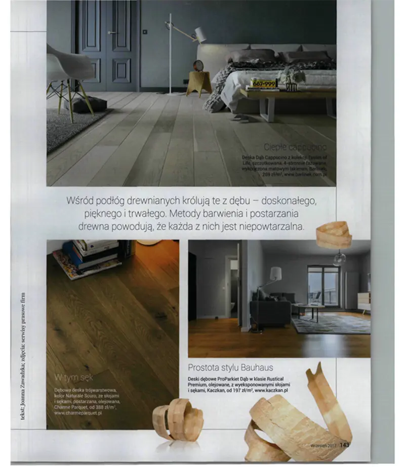 Drewniana podłoga to kanon piękna we wnętrzach. Kochamy ją za niepowtarzalność, naturalność i niezawodną jakość – upływające lata dodają jej tylko szlachetności i uroku. Takie są deski podłogowe Charme Parquet, o których pojawiła się wzmianka na czasnawnetrze.pl.