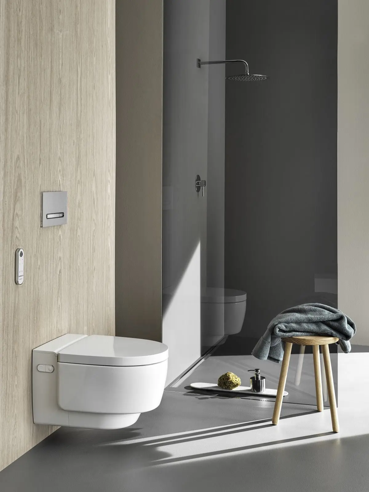 Jedne z najbardziej znanych toalet myjących na świecie to produkty Geberit AquaClean. Dzięki opatentowanej technologii WhirlSpray, pulsujący strumień prysznicowy umożliwia precyzyjne i dokładne mycie przy małym zużyciu wody. Z kolei innowacyjna technika TurboFlush zapewnia wyjątkowo ciche i dokładne spłukiwanie.