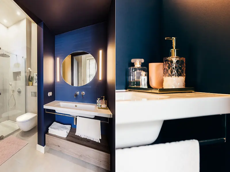 Granatowy kolor w pomieszczeniach sprzyja także podejmowaniu ważnych i przemyślanych decyzji.