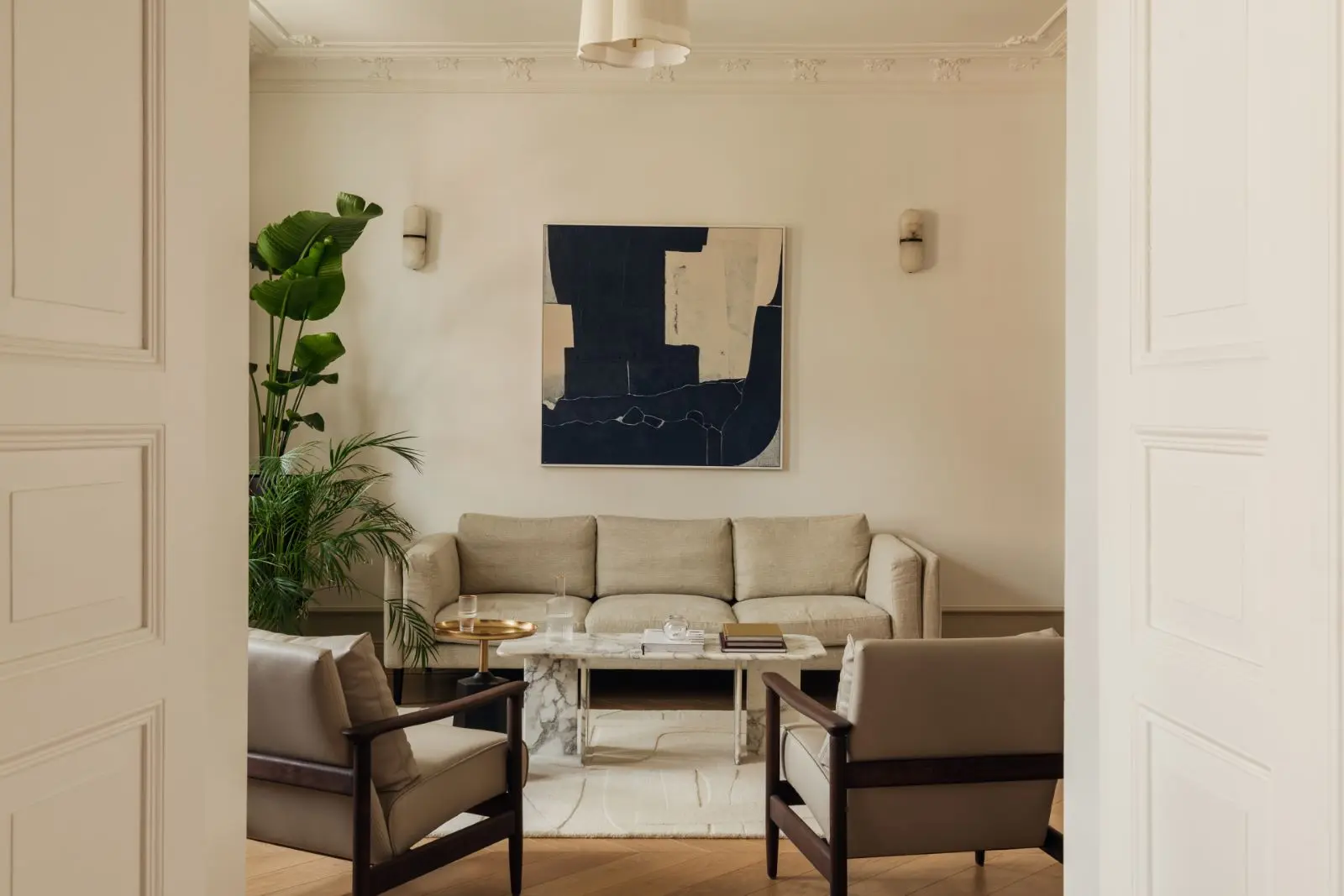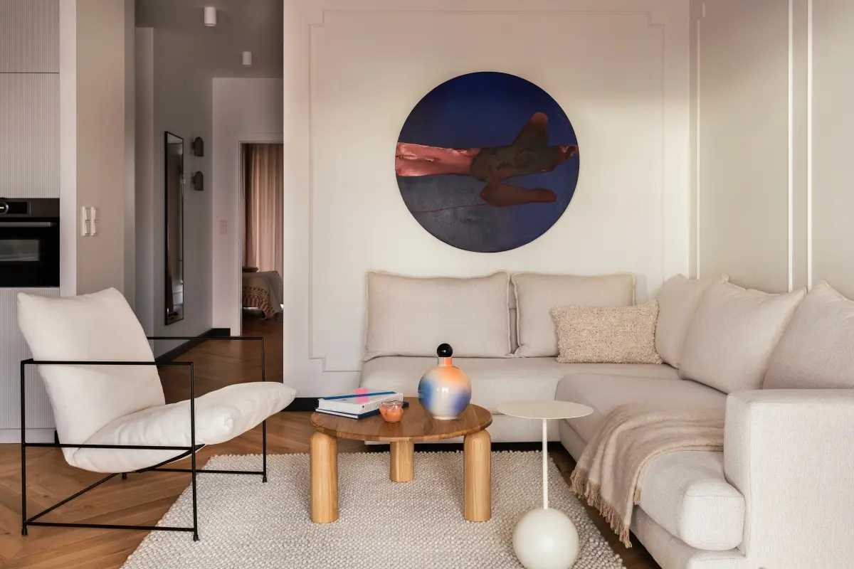 Innym sposobem na ożywienie wnętrza skąpanego w beżach są oczywiście elementy vintage. Możemy postawić na meble w stylu retro, oświetlenie, albo dywany. W ten sposób tworzymy nie tylko w pełni spersonalizowane wnętrze, ale też uciekamy od wszechogarniającego trendu japandi, który jak każdy inny, ma swój termin ważności. Natomiast elementy vintage wkomponowane w nowoczesne wnętrze, zawsze się obronią, chociażby wzornictwem i jakością, która przetrwała próbę czasu.