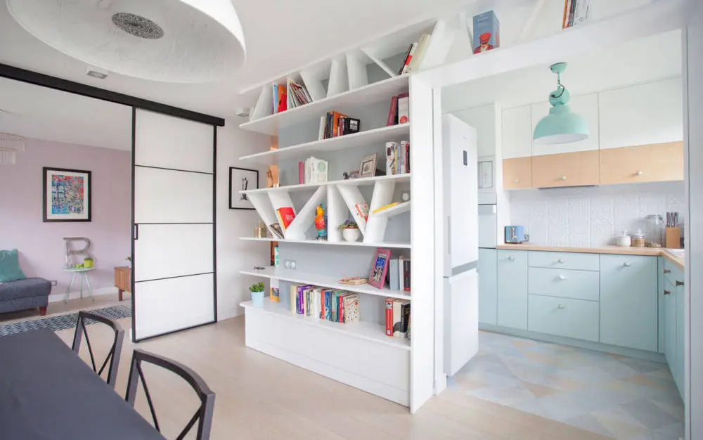 Urządzenie małego mieszkania wiąże się z wydzielaniem stref, a to można zrobić nawet w sposób symboliczny, na przykład za pomocą rozłożonego dywanu czy mebla rozdzielającego jedno pomieszczenia na dwa. Innymi ciekawymi pomysłami są przeszklenia we wnętrzu, drewniane tralki lub ścianki działowe.