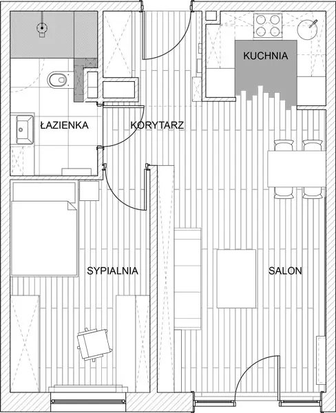 Na pierwszy ogień pójdzie małe mieszkanie urządzone w modnym skandynawskim klimacie. Jak podkreślają autorzy projektu z Boho Studio, głównym celem było otwarcie przestrzeni i doświetlenie wszystkich pomieszczeń, co przy małym metrażu jest naprawdę cenne. W tym celu zmniejszono niefunkcjonalny i zbyt duży korytarz, a także zmieniono układ ścianek działowych.