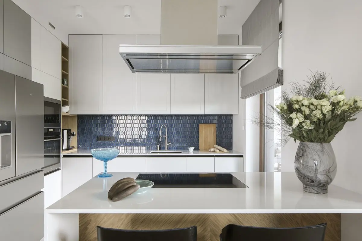 Jeśli nie wiecie, który kolor wybrać: biel czy szarość, możecie postawić na stylowy kompromis, w którym łączą się te dwie barwy w ramach jednego wnętrza. Idealnym uzupełnieniem będzie drewno, które ociepli kuchnię i sprawi, że będzie bardziej przytulna.