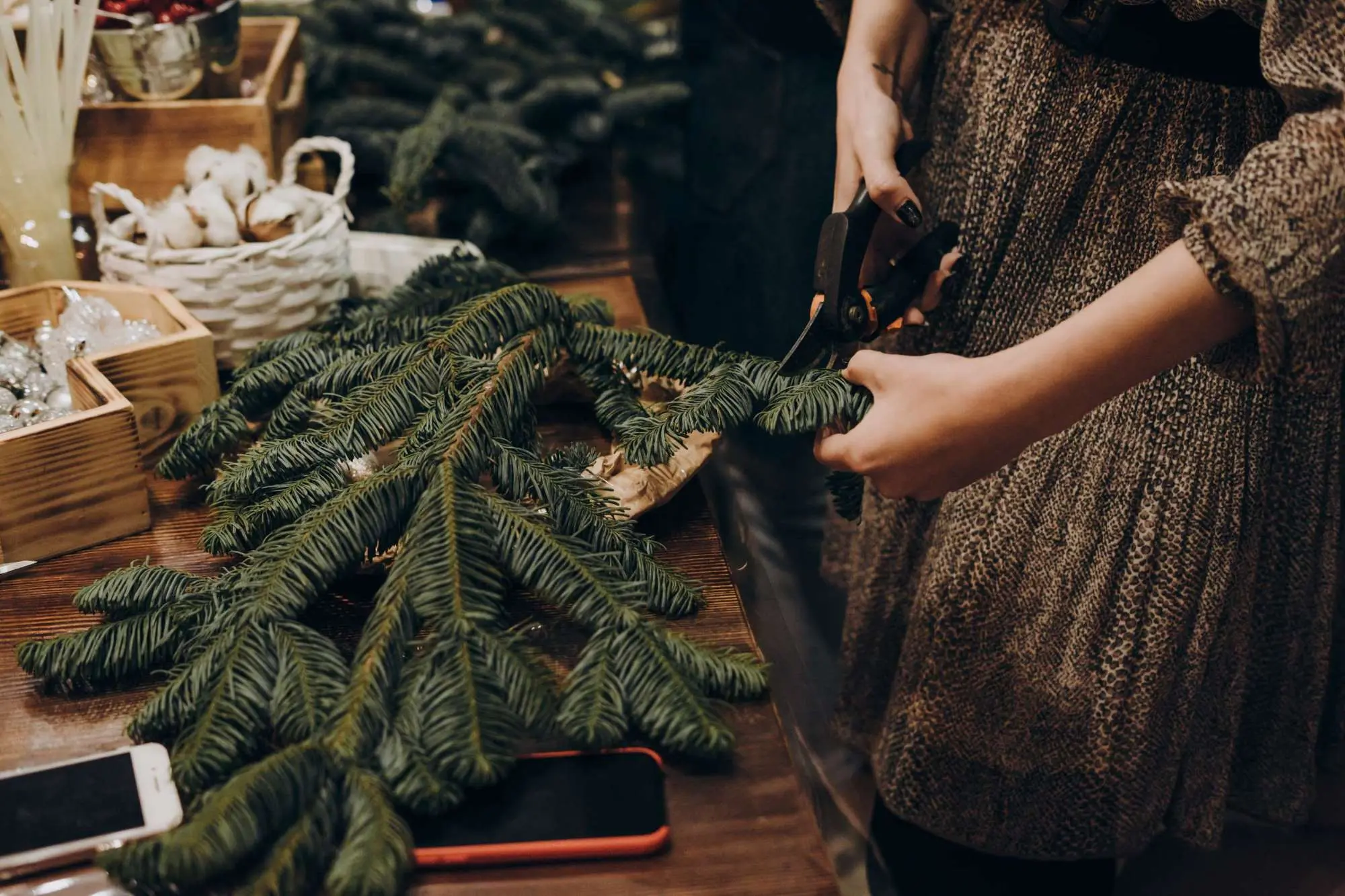 - Przytnij gałęzie na różne długości – najdłuższe będą u dołu, a najkrótsze na górze, co nada choinkę stożkowego kształtu.