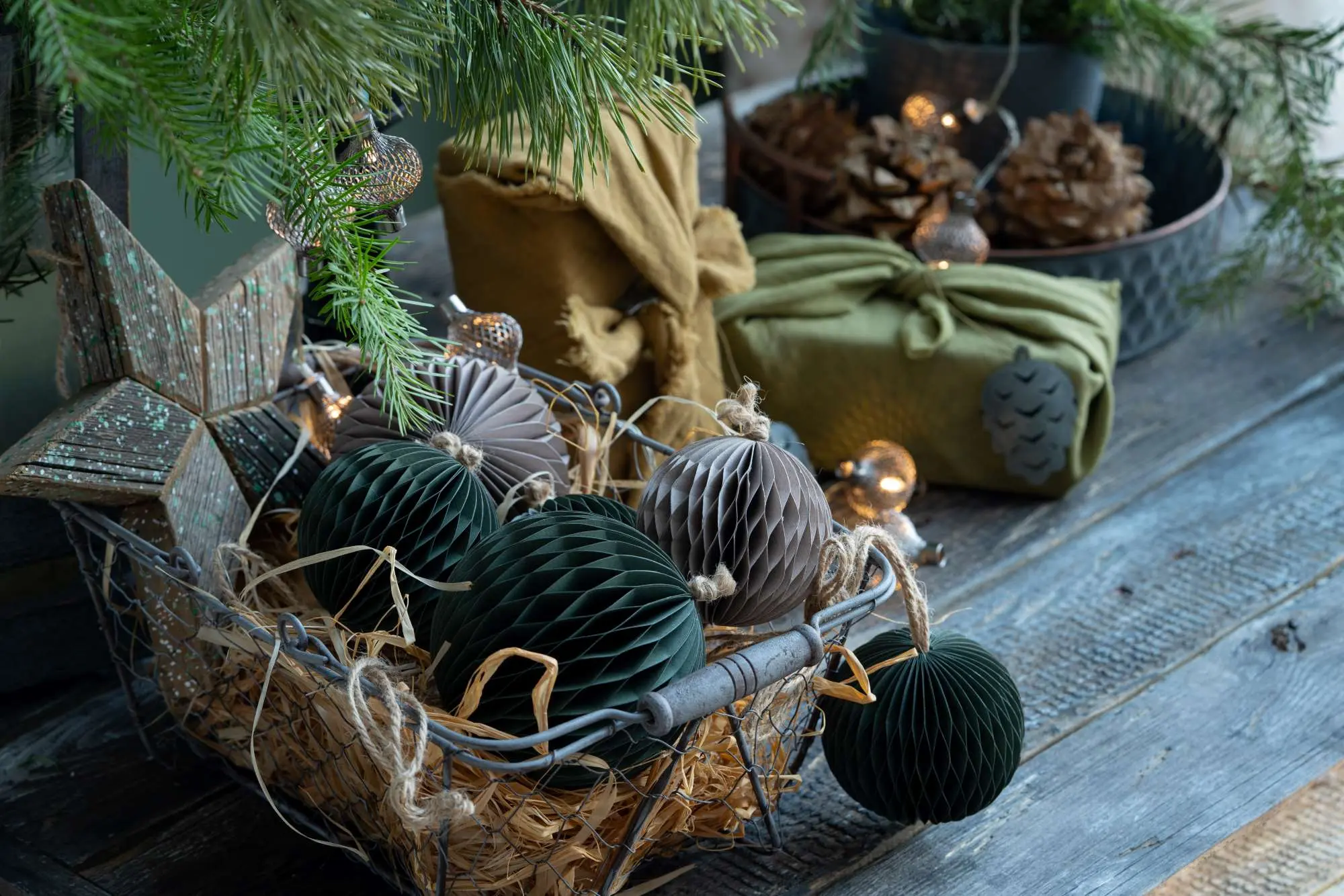 - Ozdoby świąteczne – bombki, światełka, kokardy, szyszki.