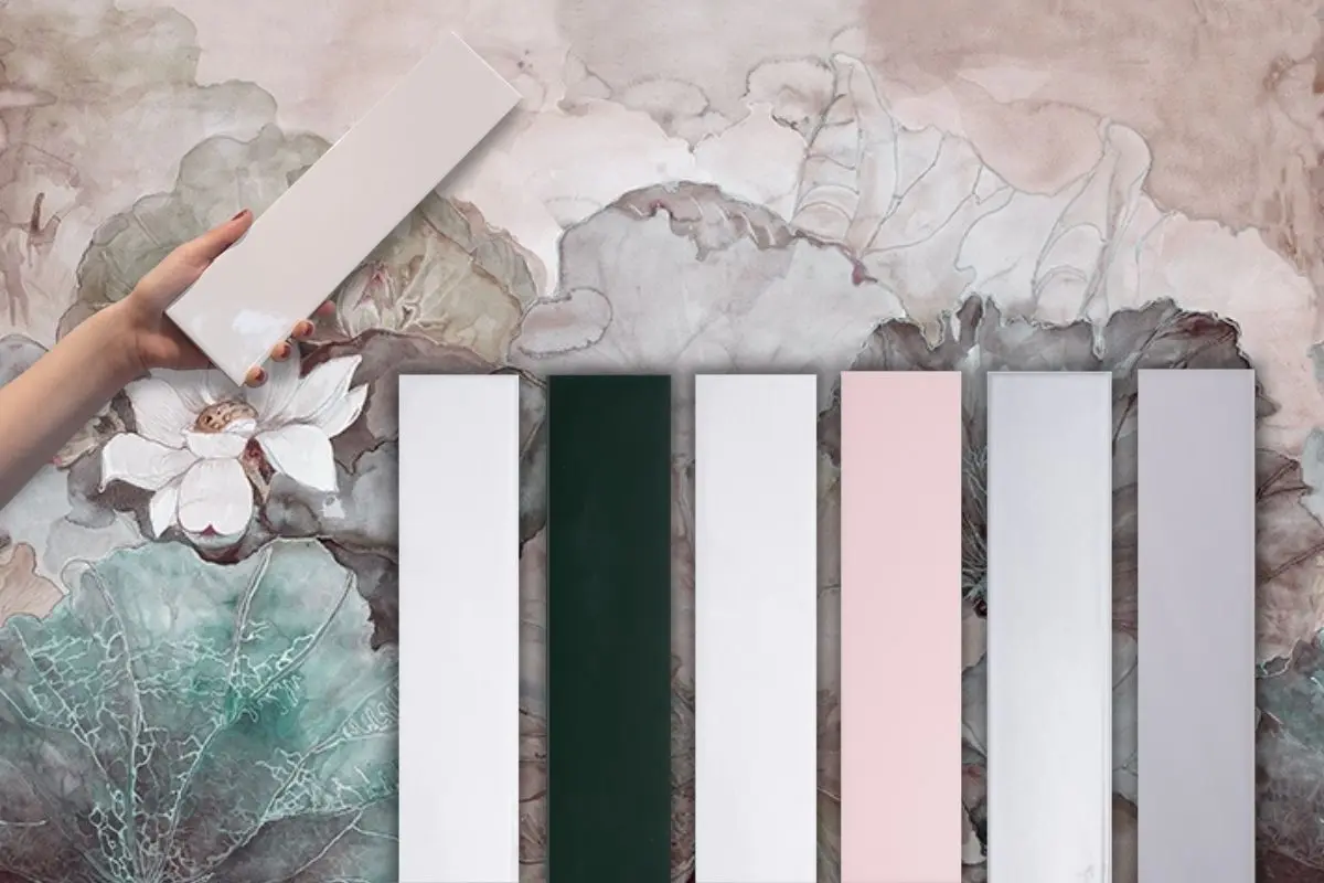 Tapetę Niveum Wall & Deco możemy dopełniać wieloma kolorami. Poniżej pokazujemy jak łączy się z płytkami z rodziny IH Selection.