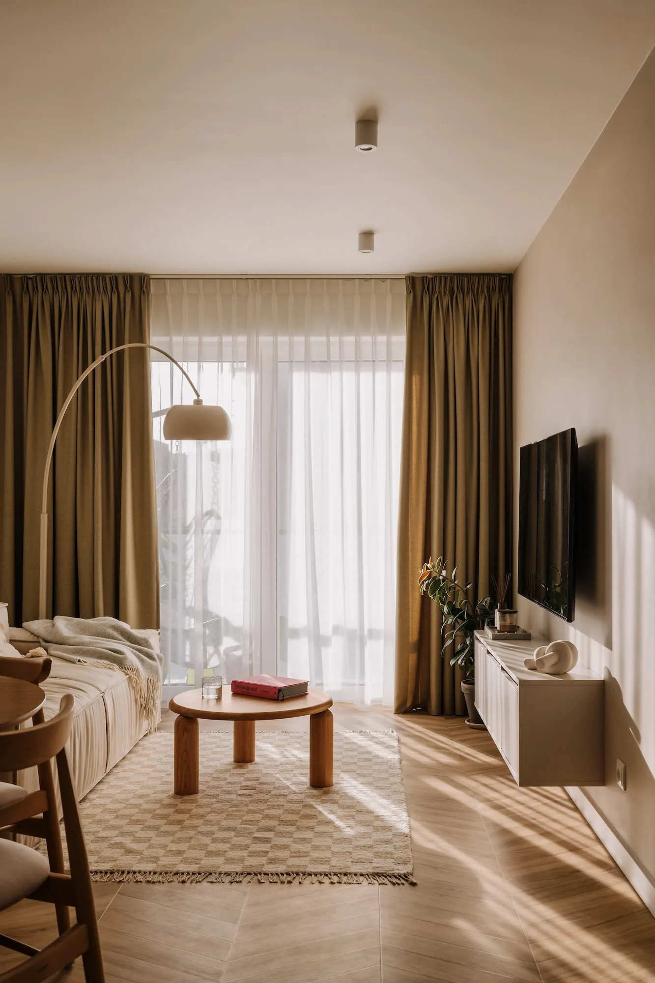 Inną propozycją, którą warto zastosować przy małym metrażu, jest wyzbycie się zbędnych ścian działowych, a postawienie na otwartą przestrzeń. To daje o wiele więcej możliwości aranżacyjnych, wpływa na pozytywny odbiór wnętrza, a także odpowiednie doświetlenie każdego zakamarka. Jak stworzyć salon w otwartej przestrzeni? Odwrócona sofa od reszty mieszkania to pierwsze rozwiązanie. Ustawiona za nią półka, komoda lub konsola spotęgują ten efekt i zapewnią dodatkowe miejsce na przechowywanie.