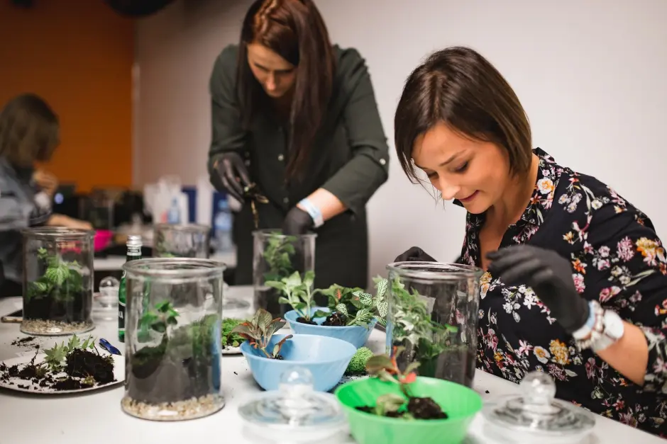 Do zamkniętych kompozycji najlepiej sprawdzają się rośliny cieniolubne, o niewielkich wymaganiach wodnych i wzrostowych. Popularne gatunki to: paprocie, fitonie, bluszcz, mech płaski, pilea czy niedośpian. Ich układ warto zaplanować w sposób harmonijny, z uwzględnieniem zróżnicowanej wysokości i struktury liści.