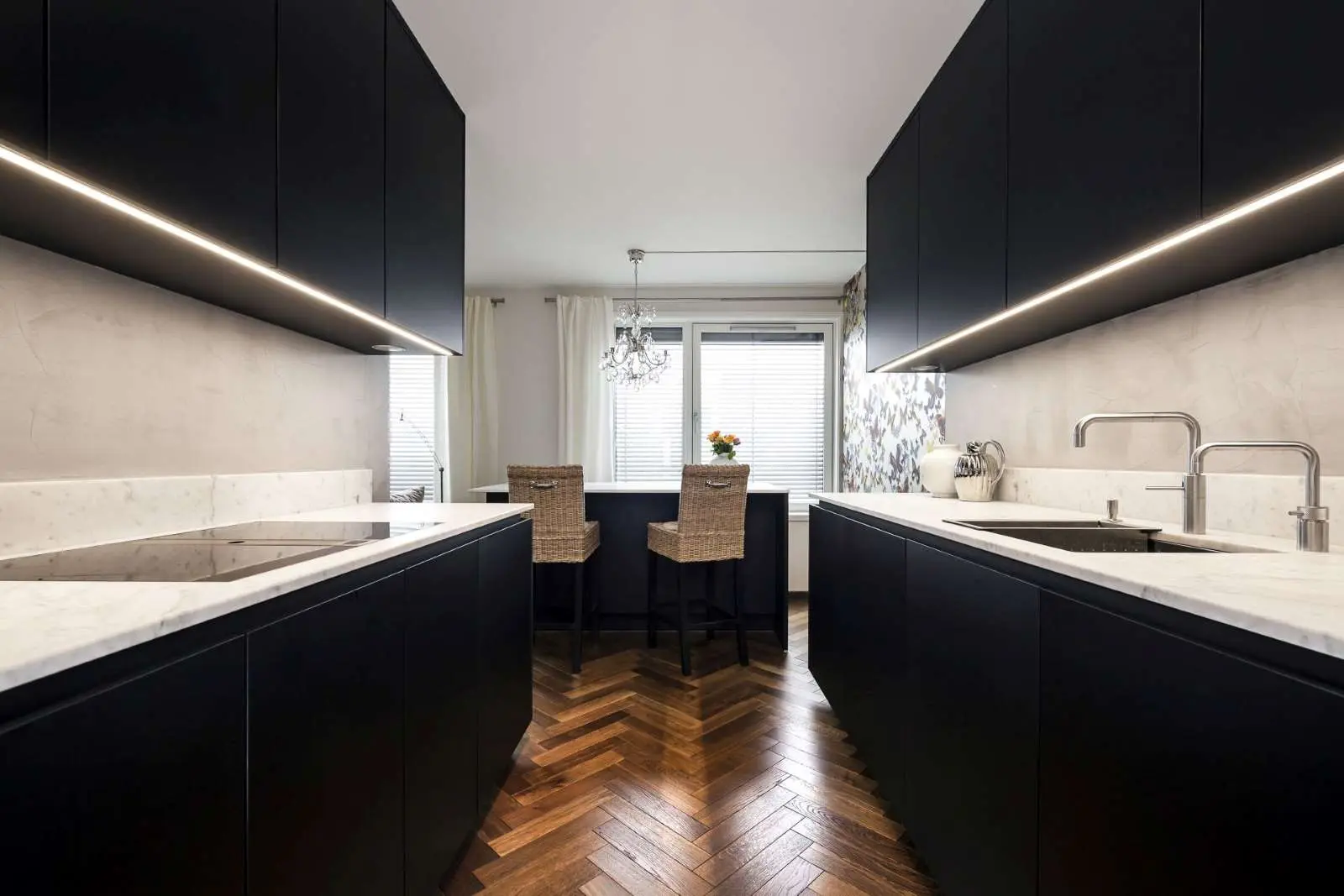 Materiału warstwowego nie należy traktować jako ograniczenia: jest on dostępny w równie bogatym wyborze kolorów i rozmiarów, co drewno lite. Do wyboru są nie tylko deski, ale także klepki oraz kasetony podłogowe.