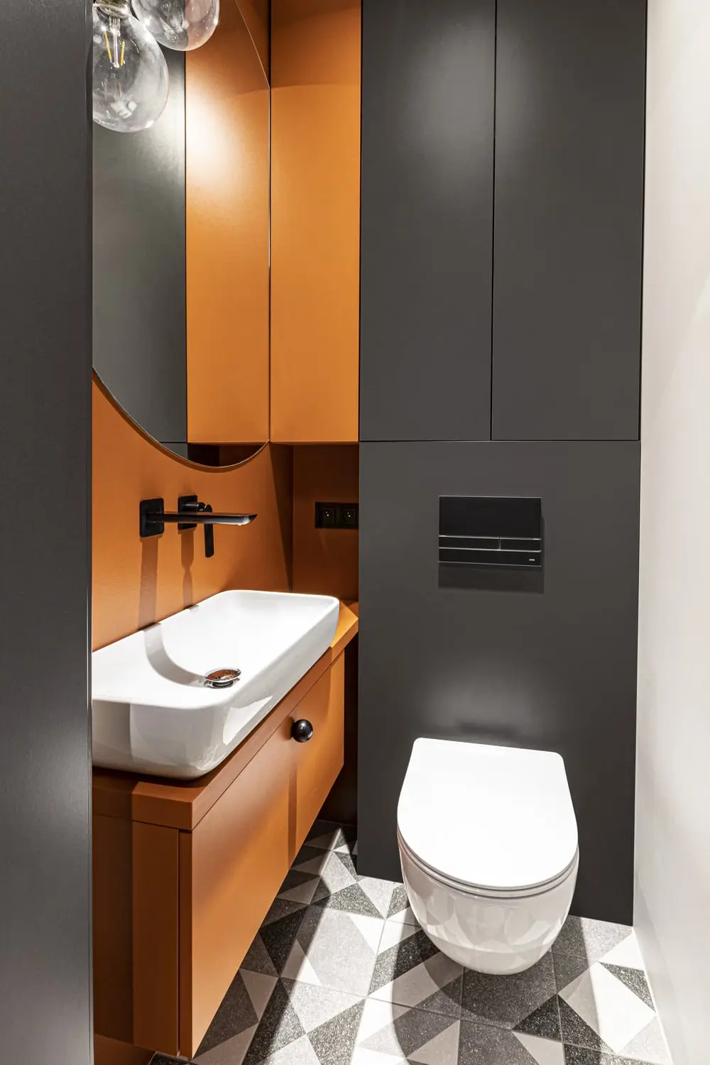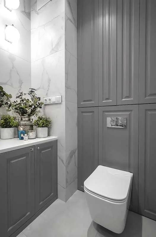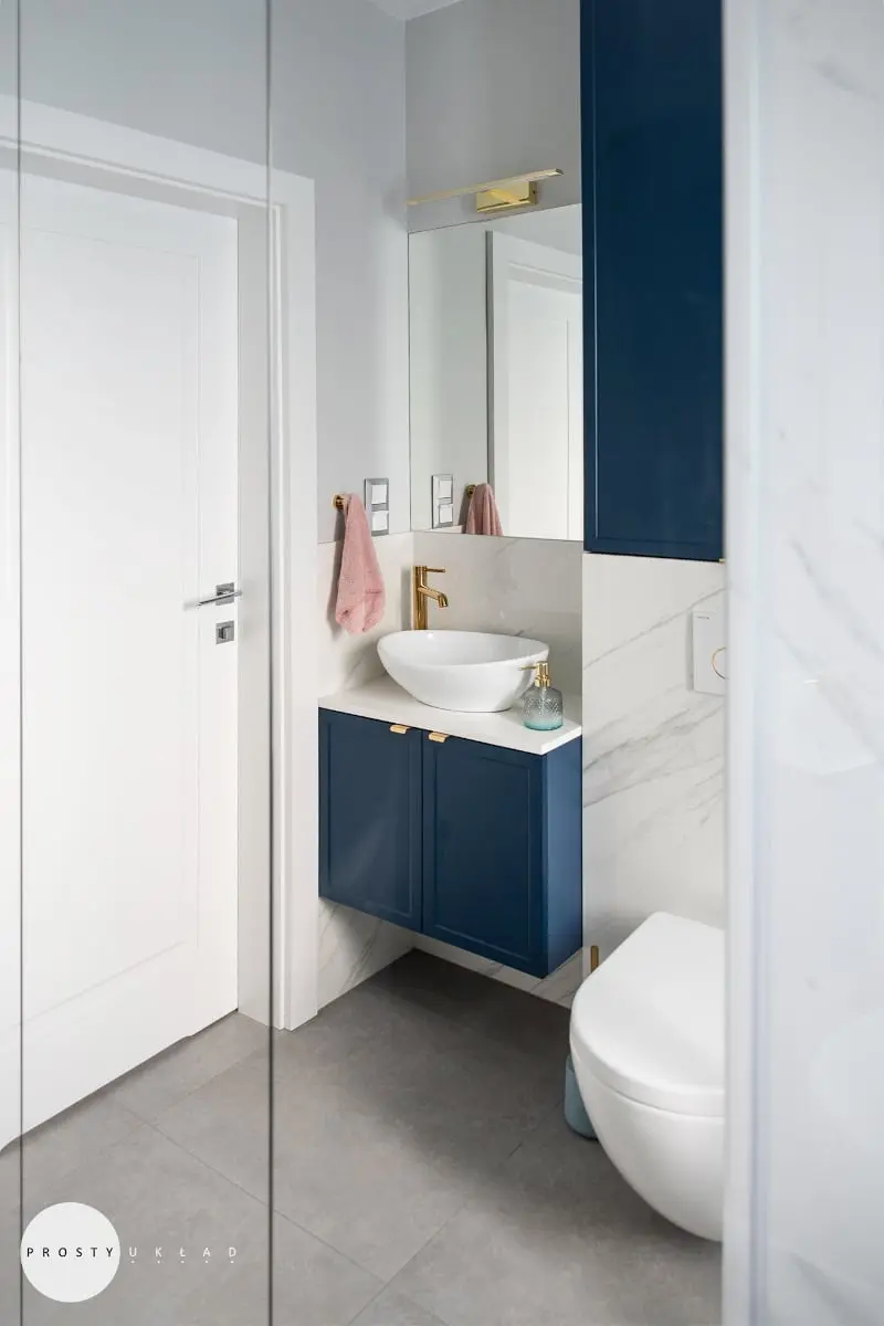 Warto również zadbać o miejsce do przechowywania. Przy małym metrażu najlepiej sprawdzają się zabudowy robione pod wymiar przez stolarza. Wtedy mamy pewność, że wykorzystaliśmy maksymalną ilość miejsca. Najbardziej uniwersalnym rozwiązaniem jest zainwestowanie w szafkę podumywalką. Inną alternatywą jest miejsce nad ścianką kryjącą stelaż do wc. Tam możemy zaprojektować szafkę, tworząc dodatkowe miejsce do przechowywania.