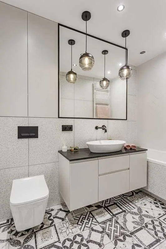 Najogólniejsza zasada mówi o tym, aby zadbać o obecność światła ogólnego, które równomiernie oświetli całe wnętrze (w tej roli sprawdzi się także oświetlenie punktowe, np. oprawy natynkowe, albo wpuszczane) a także to oświetlające strefę umywalkową. W tym przypadku doskonale sprawdzą się kinkiety po obu stronach lustra, albo oprawy wiszące dopełniające aranżację wnętrza.