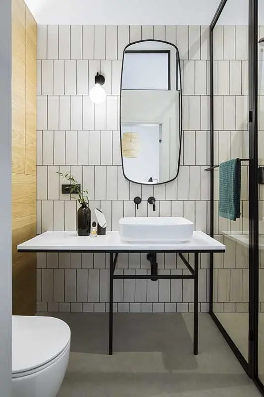 Wszystko tak naprawdę zależy od metrażu, jakim dysponujemy. Warto na wstępie zaznaczyć, że niezbędne minimum to miska wc i umywalka. Jeśli tych metrów jest troszkę więcej możemy pokusić się o prysznic. Z doświadczenia wiemy, że w tego typu łazienkach najlepiej sprawdza się odpływ liniowy (zamiast tradycyjnego brodzika), który jest wydzielony od reszty łazienki minimalistycznym przeszkleniem niezabierającym optycznie miejsca.