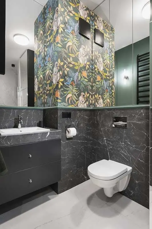 Ciekawą propozycją, która stanowi coraz częściej alternatywę dla tradycyjnych płytek, są wodoodporne tapety dedykowane do łazienek. Naszym zdaniem doskonale sprawdzą się w roli dekoracji łazienki dla gości.