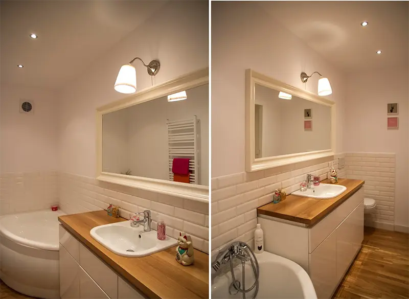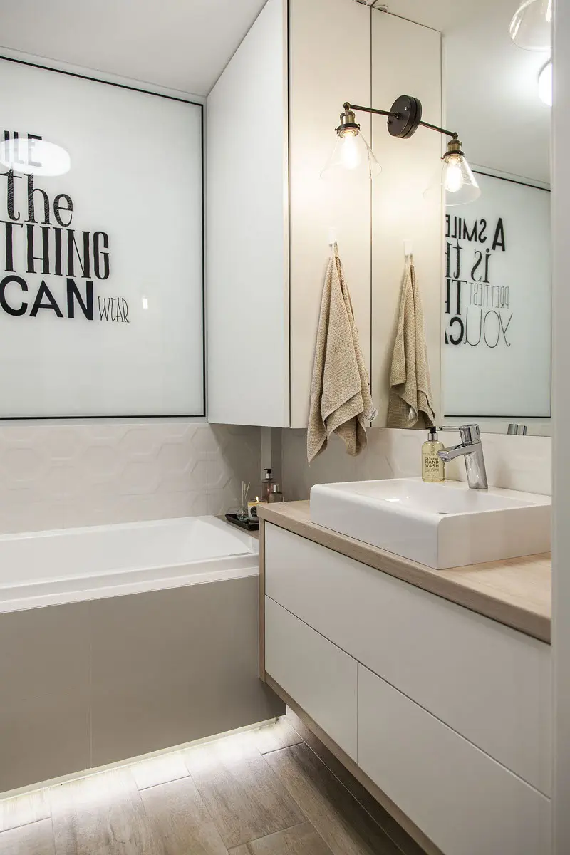 Przecież każdy z nas ma coś, i z jednego typu, i z drugiego. Ja na przykład latem preferuję chłodny prysznic, a nie wyobrażam sobie zimy bez aromatycznej kąpieli w wannie pełnej piany. I gdybym miała sugerować się powyższą regułą, nigdy nie mogłabym się ostatecznie zdecydować. Dlatego wybrałam opcję „2w1”, czyli wannę ze szklanym parawanem, dzięki któremu podczas brania szybkiego prysznicu, woda nie chlapie po całej łazience. Bardziej ekonomicznym rozwiązaniem jest przewieszenie przeznaczonego do tego materiału (osobiście nie przepadam za tym pomysłem, ale jak wiadomo – 0 gustach się nie dyskutuje).