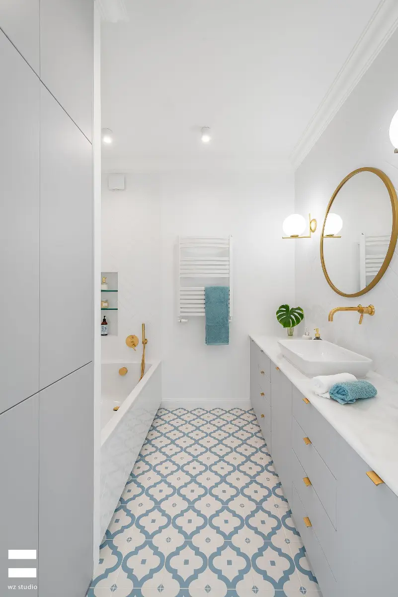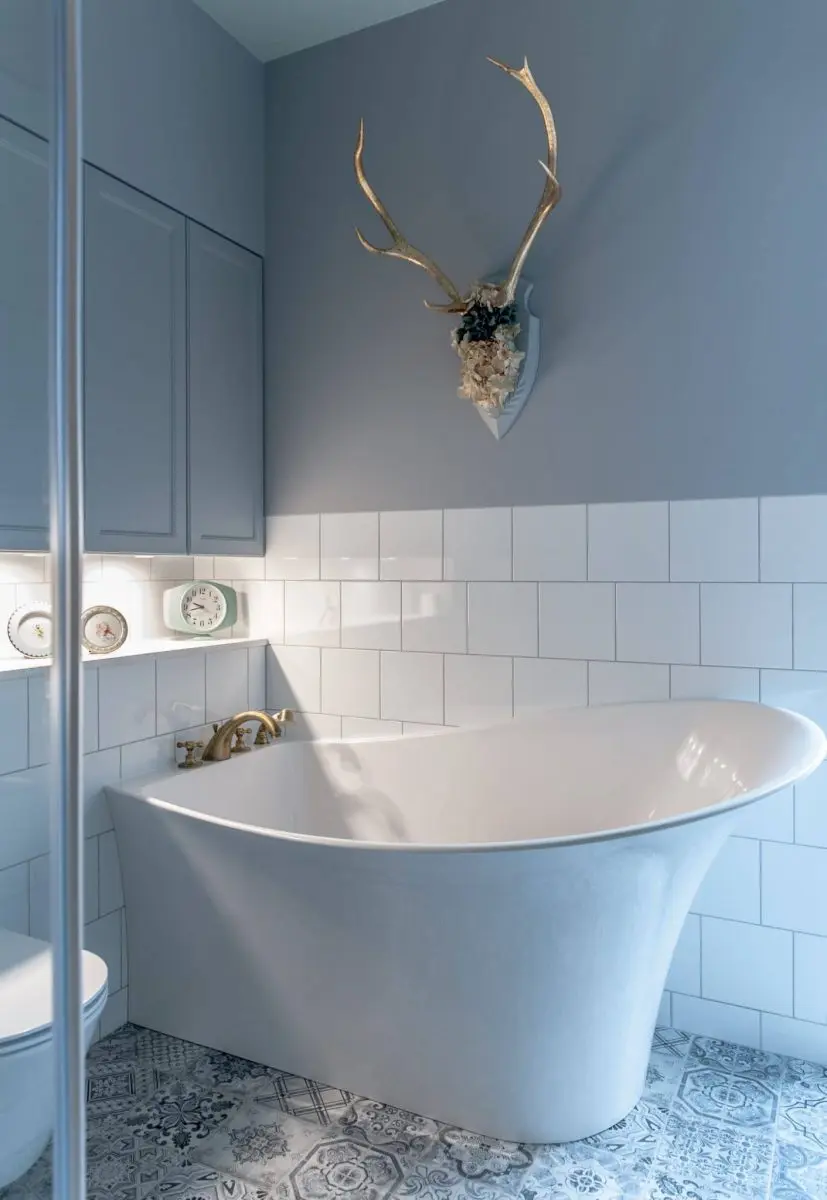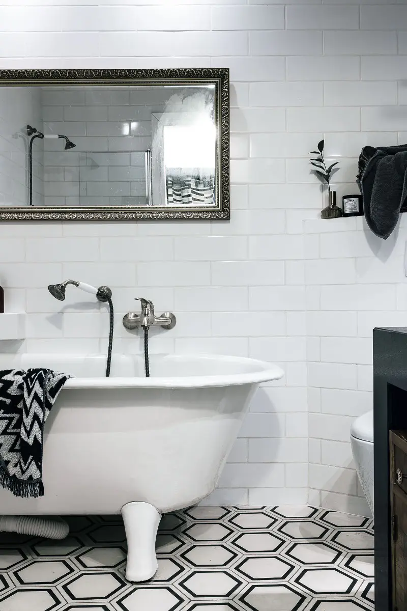 Jeśli ktoś z Was zdecyduje się na wannę wolnostojącą pomimo małego metrażu, polecam wziąć pod uwagę wystrój vintage. Wanna na nóżkach w stylu retro zazwyczaj charakteryzuje się bardziej kompaktową formą niż te w nowoczesnym wydaniu. Ponadto ma owalne kształty, które doskonale sprawdzają się w małych wnętrzach. Dodatkowo, wanna na nóżkach doda aranżacji pożądanej lekkości. Nic, tylko brać! 🙂