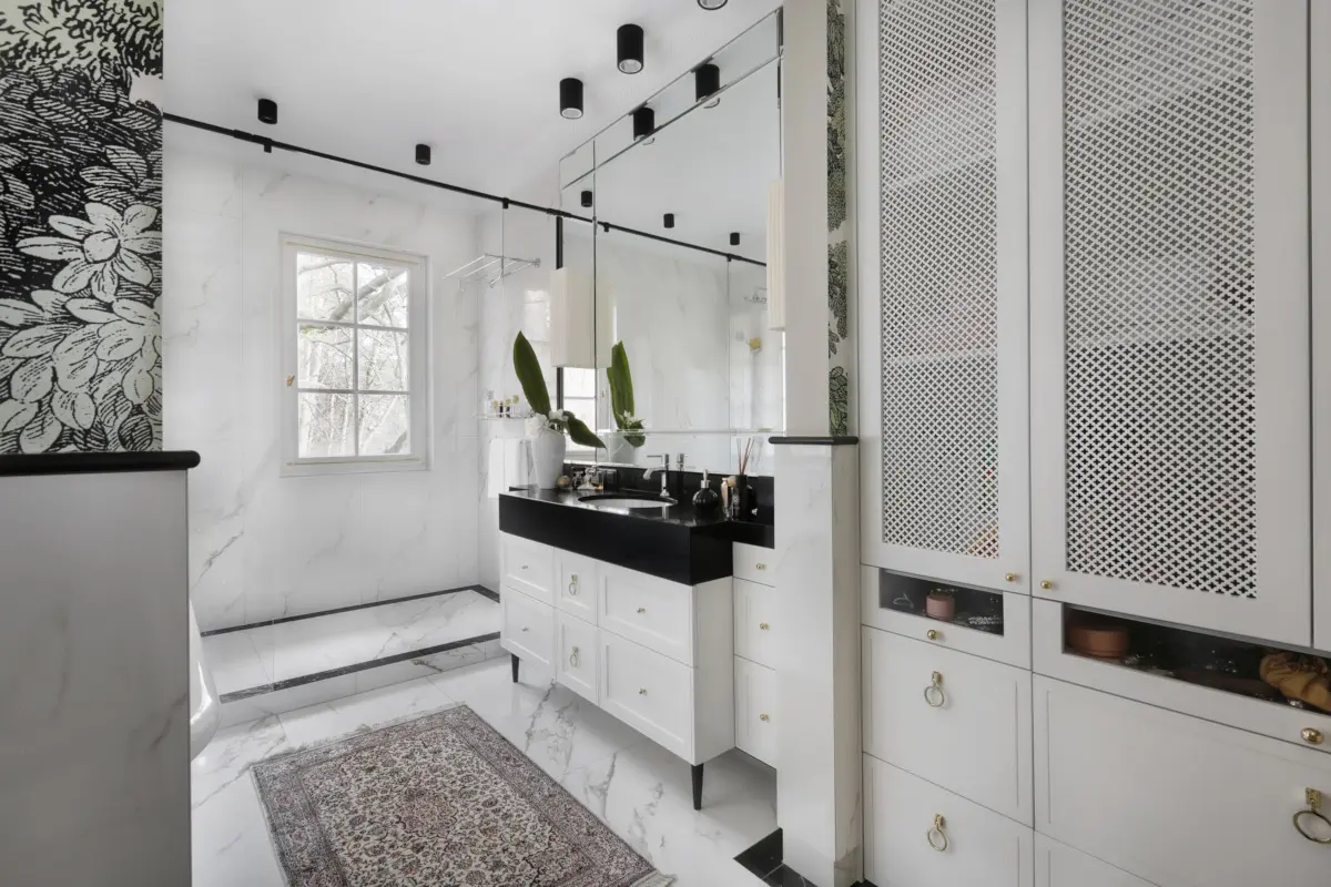 Wbrew pozorom marmur sprawdzi się nie tylko wtedy, gdy chcemy urządzić monumentalne czy korespondujące z organicznym designem wnętrze. Coraz więcej projektów łazienek z wykorzystaniem marmuru odbiega od utartych schematów. Architekci łączą marmur z czarną armaturą, tapetami czy płytkami w tropikalny wzór, a nawet tymi wzorzystymi. Ciekawym zabiegiem jest połączenie tego kamienia z mocniejszym kolorem, na przykład różem, butelkową zielenią, granatem czy chociażby nieśmiertelną czernią.