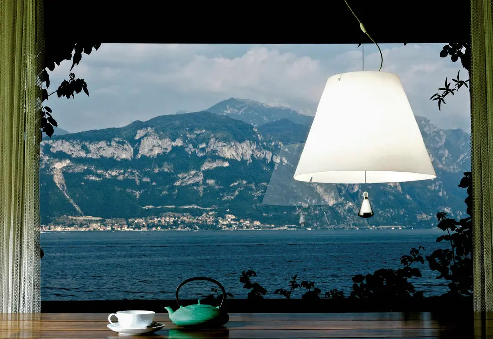 Lampy Luceplan z rodziny Cappuccina, to lampy stojące jak również zwieszane, dostępne w trzech kolorach. Tworzą nastrojowe, ciepłe światło. Co ciekawe mają ruchomy abażur, który pozwala na swobodne ustawienie światła.