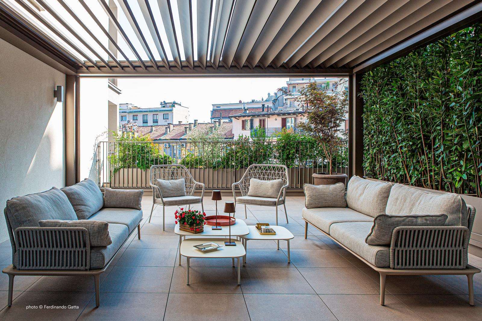 Na dużych tarasach przydomowych najlepiej sprawdzą się wygodne sofy i rozłożyste fotele z miękkim siedziskiem. Pozwalają rozsiąść się równie wygodnie, jak we własnym salonie, jednak zapewniając przyjemność z łapania pierwszych promieni słonecznych. Doskonałym pomysłem są także leżaki, na których w chłodniejsze dni można położyć koc, zaś latem są idealnym miejscem do opalania.