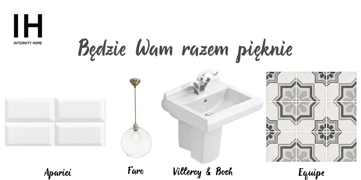Teraz kolej na jedno z najbardziej nieoczywistych połączeń, które, muszę przyznać, jest jednym z moich ulubionych. Na ścianach, najlepiej tylko w miejscach, które tego wymagają, układamy płytki „metro” przypominające tradycyjne kafle. Łącząc je z białą fugą, otrzymamy nieskazitelnie czysty efekt. Doprawiając je czarną fugą, możemy mieć pewność, że obok takiej aranżacji nikt nie przejdzie obojętnie.
